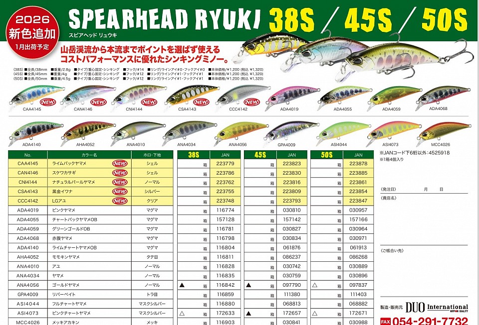 Spearhead Ryuki 38S - 38mm - 2.8g, in 18 colori